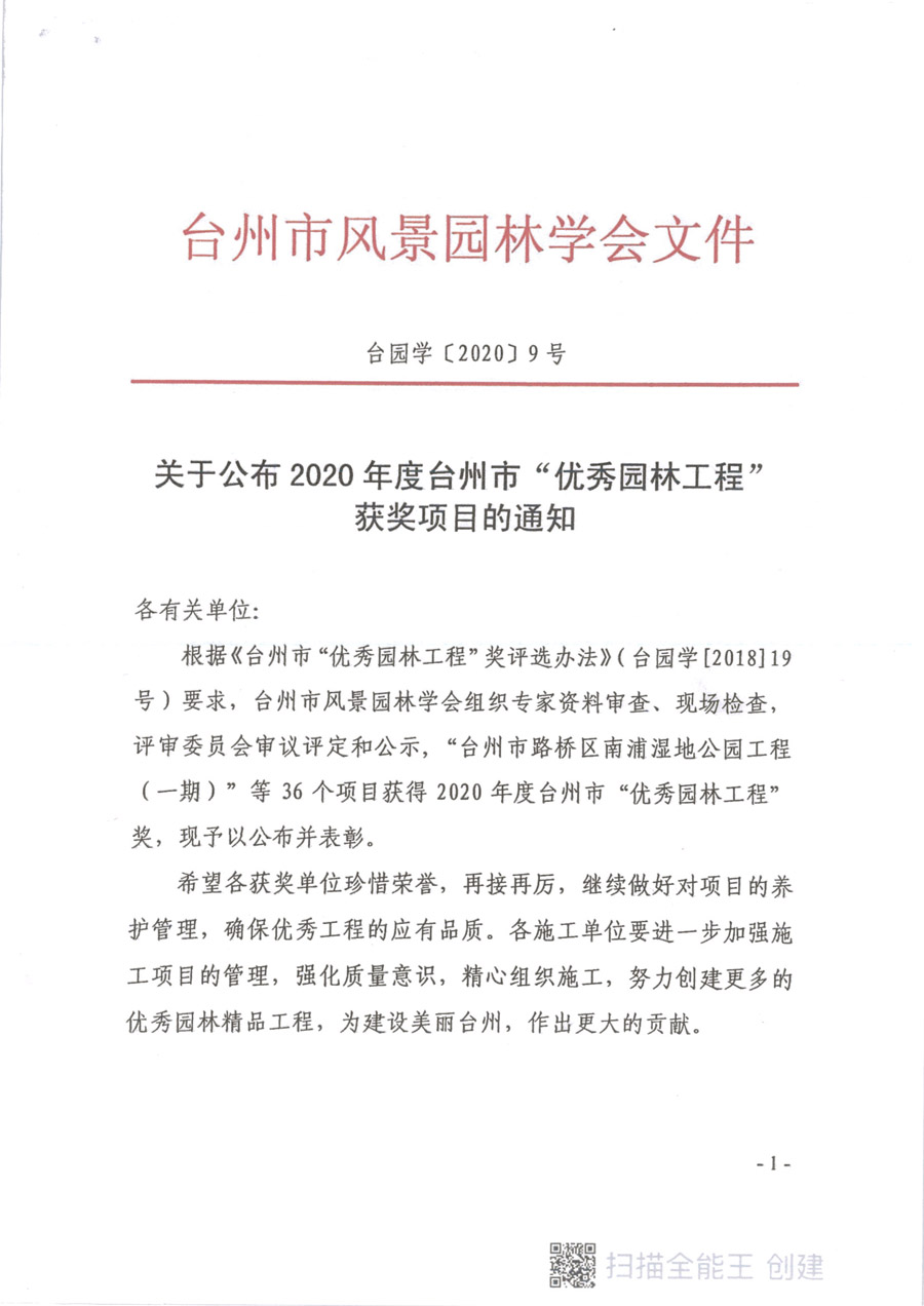 2020臺州市優秀園林