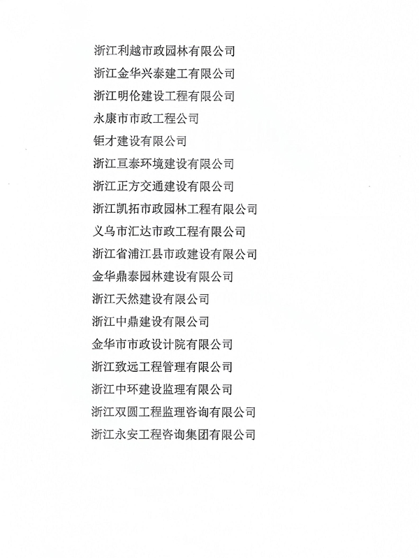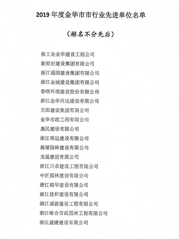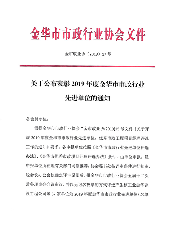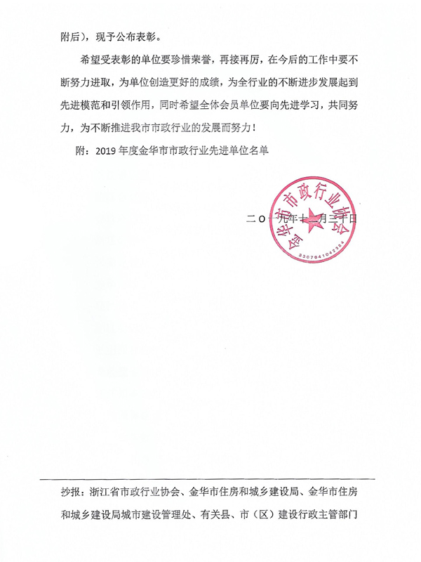 2019年金華市市政行業先進單位