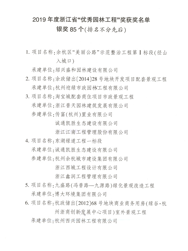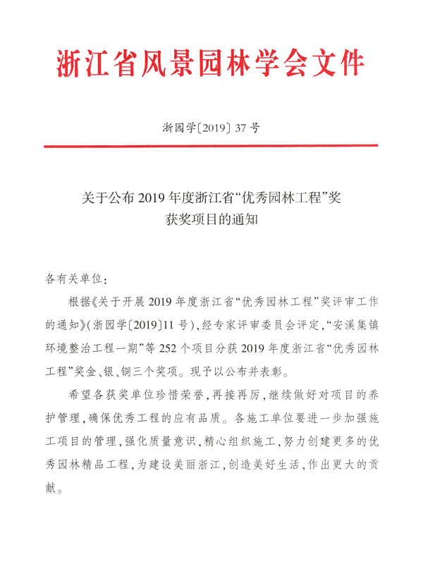 2019年浙江省優秀園林銀獎