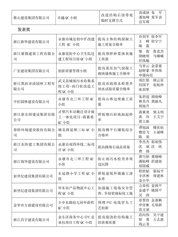 2020永康市北三環(huán)工程QC發(fā)表獎(jiǎng)