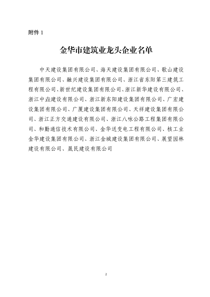 金華市建筑業龍頭骨干企業、建筑業中企服務龍頭企業的通知